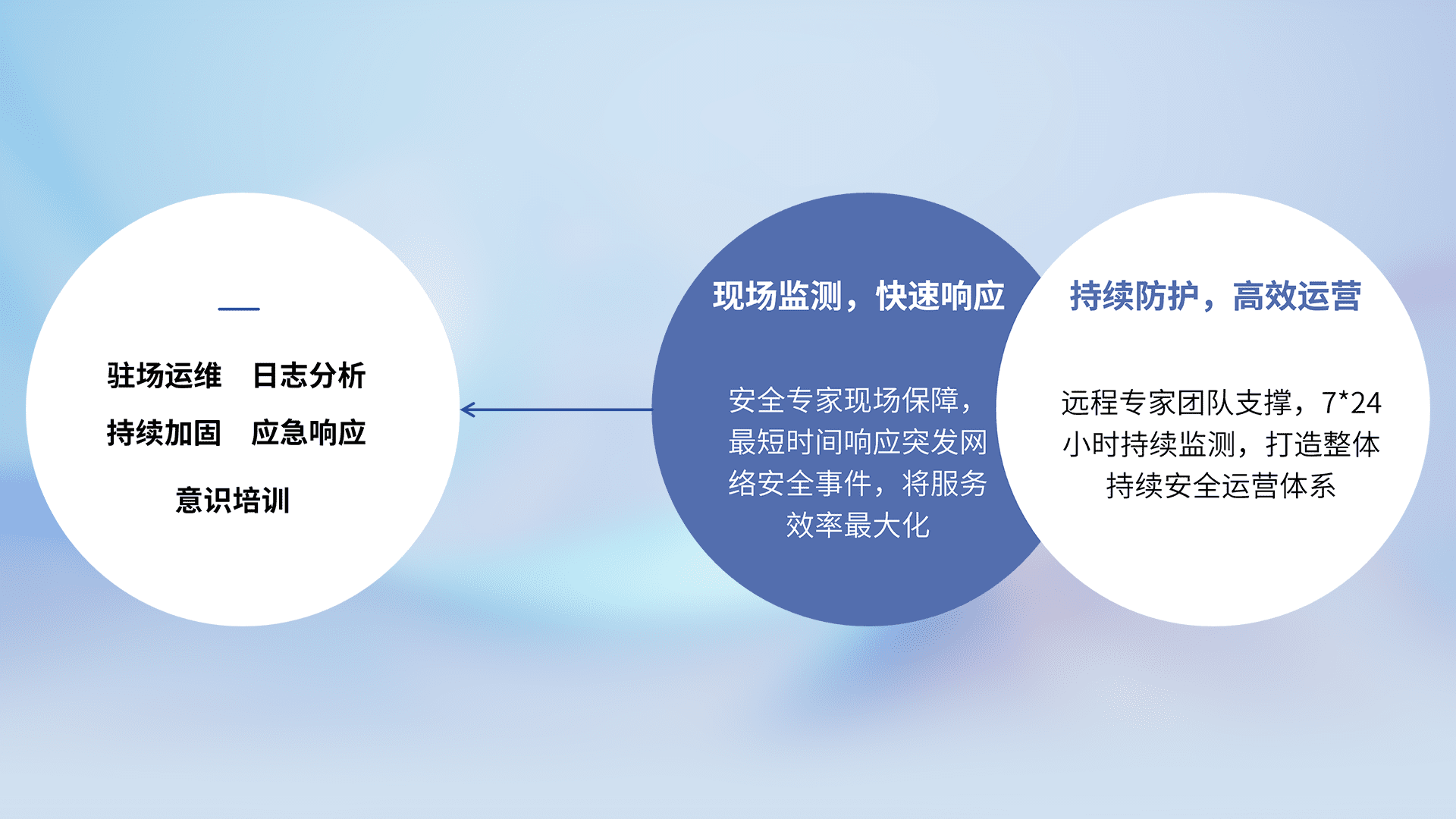 7X24小时持续监测安全事件,保持安全策略有效性,降低资产脆弱性风险,,精准拦截黑客攻击,,,,减少被黑客利用的机会,,第一时间遏制,,,,降低损失。。。